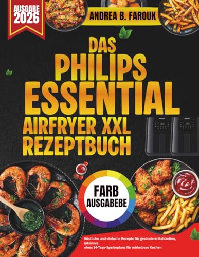 DAS PHILIPS ESSENTIAL AIRFRYER XXL REZEPTBUCH: Köstliche und einfache Rezepte für gesündere Mahlzeiten, inklusive eines 14-Tage-Speiseplans für müheloses Kochen