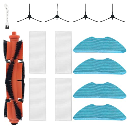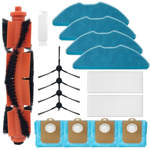 HomeTimes reservdelar för Philips Homerun serie 2000 3000 XU3100/01 XU3110/02 XU3000/01 XU3000/02 robotdammsugare tillbehör med 1 gummiborstar, 2 HEPA-filter, 4 moppkuddar, 4 sidoborstar, 4 dammpåsar,