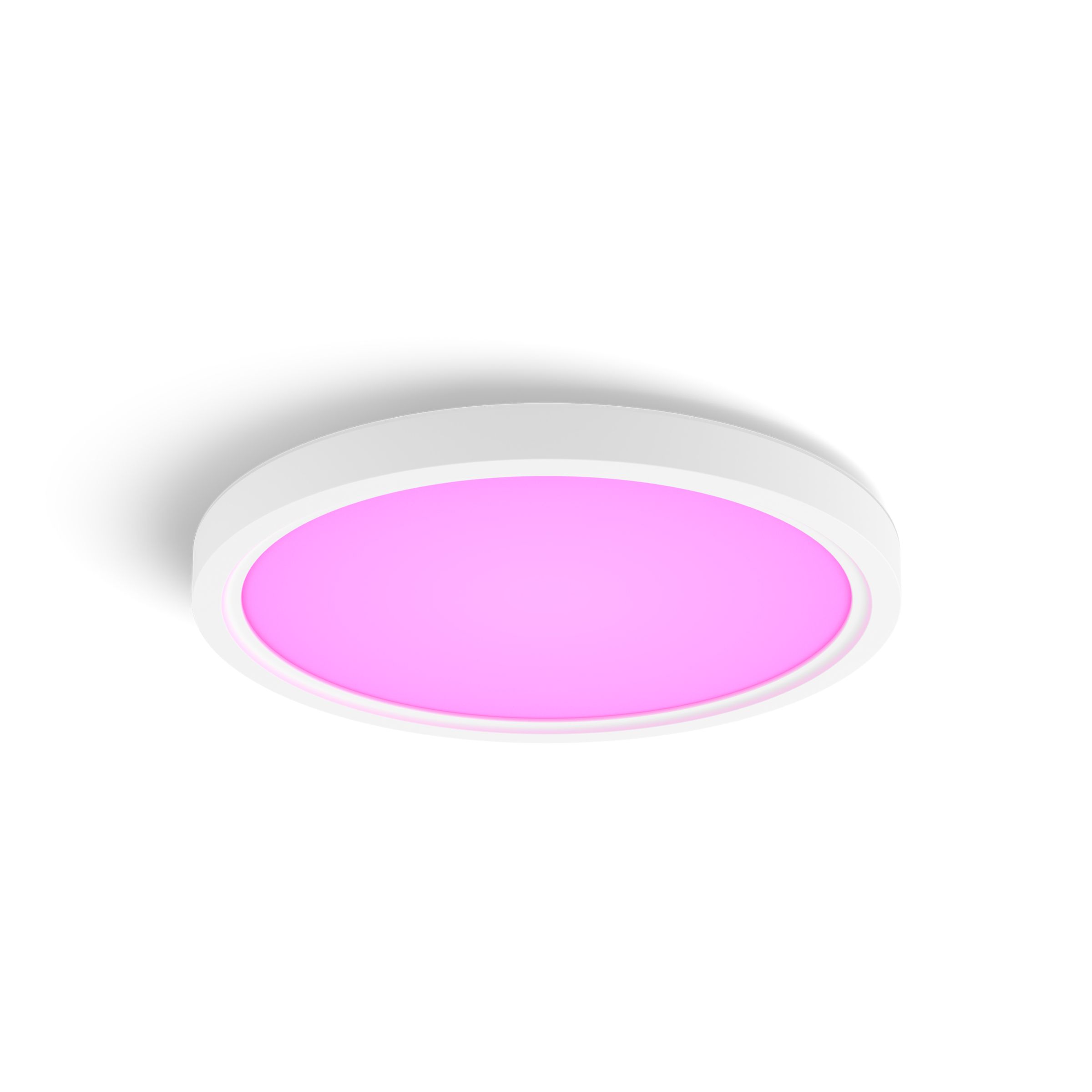 Philips Hue Devote Smart LED-panellampa, vitt ljus och full färg, rund 30 cm, 16,6 W, 2000 lumen, vit ram för inomhusbelysning, tak, vardagsrum, kök, hall, 2-pack