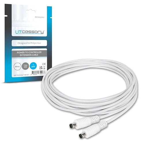 Litcessory Kraft till Kontroller Förlängningssladd för Philips Hue Lightstrip Plus/Gradient Ljusremsa (7.5 m, 1 Bit, Vit)