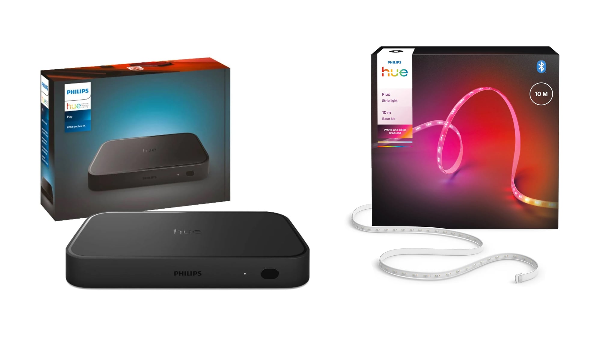 : Philips Hue Sync Box Gen 2 + Flux Gradient Lightstrip 10 m – Stort Belysningspaket för TV och