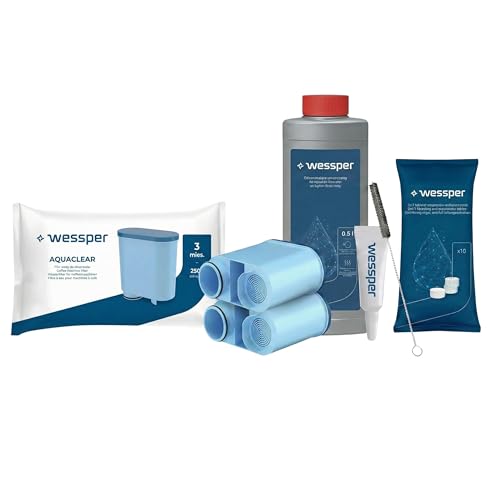 Wessper Underhållskit för Philips & Saeco – 2x Filter Kompatibla med AquaClean CA6903, Avkalkare 500ml, 10x Tabletter, Silikonfett & Borste – Rengöring Kaffemaskin & Espresso