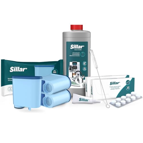 Sillar Allroundvårdsset för helautomatiska kaffemaskiner Philips, Saeco (3x AquaClean filter, komp. med CA6903, Avkalkningsmedel 500 ml, 20 x 2 g, Rengöringstabletter rengöringsborste)