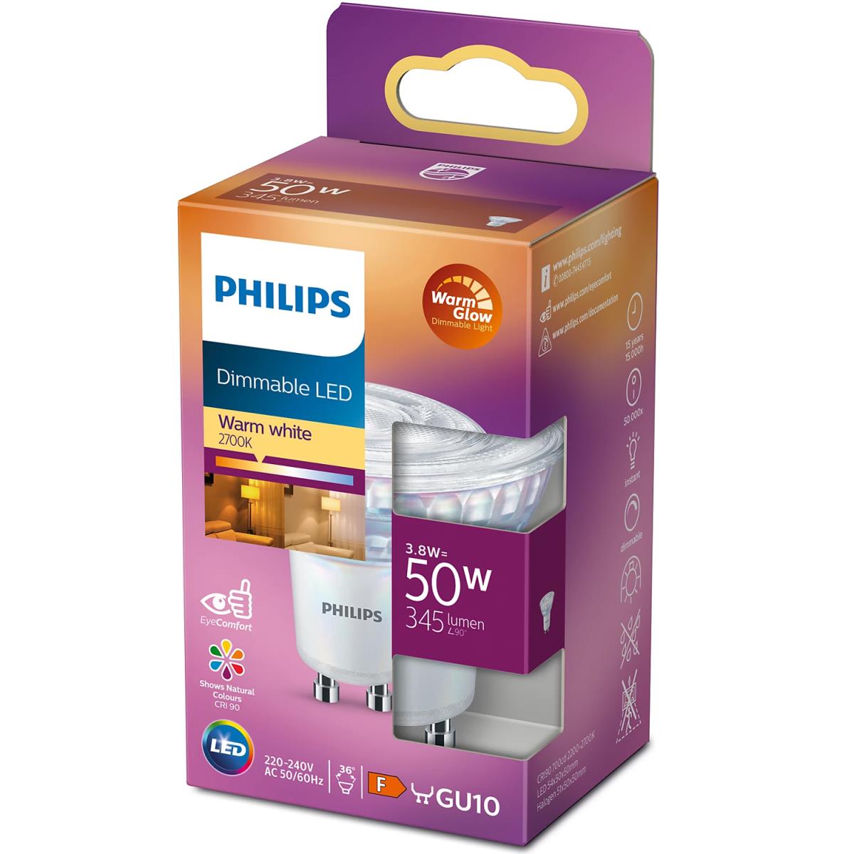 Philips: LED GU10 Spot 3,8W (50W) Dimbar WarmGlow 345lm