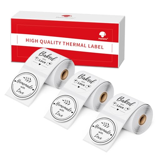 Phomemo 3 rullar självhäftande termoetiketter, kompatibla med etikettskrivaren PhomemoD30