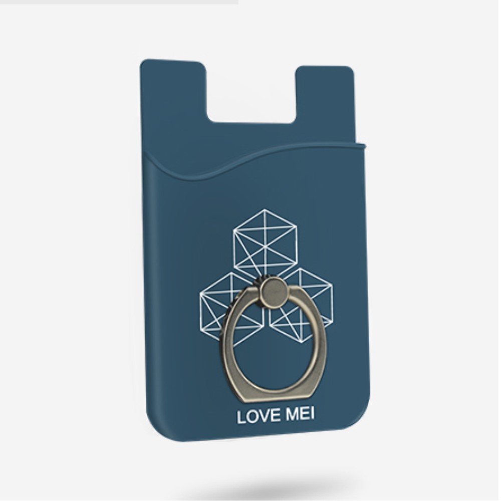 Love Mei Self Adhesive Card Holder with Finger Ring Kickstand (iPhone) - Blå