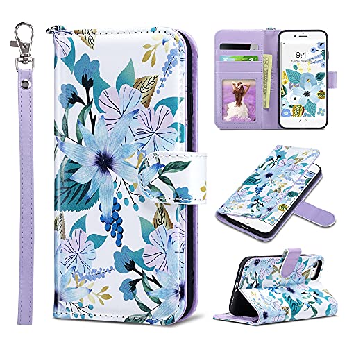 ULAK iPhone SE Case 2022/2020, iPhone 8 Case, iPhone 7 Wallet Case, PU Leather Case with Card Holder Kickstand Shockproof Protective Flip Cover for iPhone 7/8/SE 2nd/3rd Gen 4.7 inch, Flowers