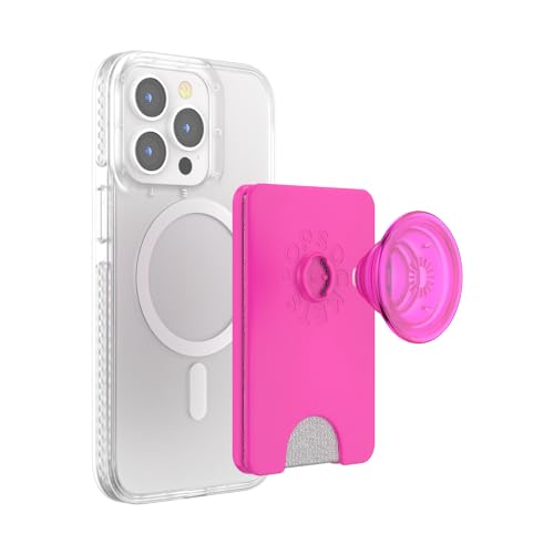 PopSockets Phone Wallet with Expanding Grip and Adapter Ring for MagSafe®, Phone Card Holder, Wireless Charging Compatible, Wallet Compatible with MagSafe® - Magenta