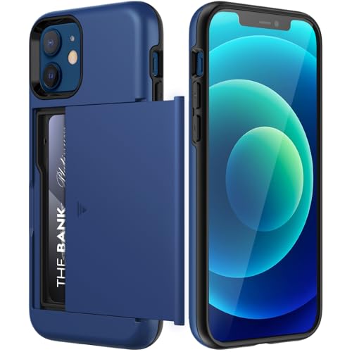 JETech Plånbok Skal för iPhone 12/12 Pro 6,1 Tum med Korthållare, Dual Layer Stötskyddad Skyddande Telefon Wallet Case with Card Holder, Glidande Dold Spår (Blå)