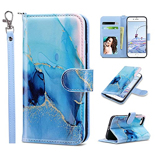 ULAK iPhone SE Case 2022/2020, iPhone 8 Case, iPhone 7 Wallet Case, PU Leather Case with Card Holder Kickstand Shockproof Protective Flip Cover for iPhone 7/8/SE 2nd/3rd Gen 4.7 inch, Marble