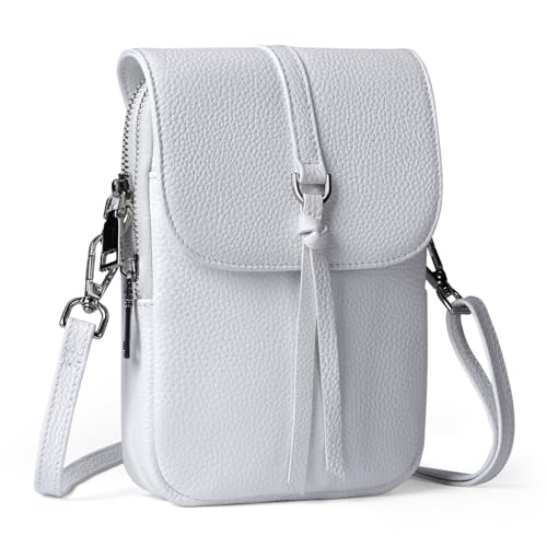 befen Genuine Leather White Crossbody Purse for Women, Soft Leather Shoulder Phone Bag Small Women's Crossbody Handbags with RFID Blocking Card Holder Anti Theft Crossover Purses for Summer Travel