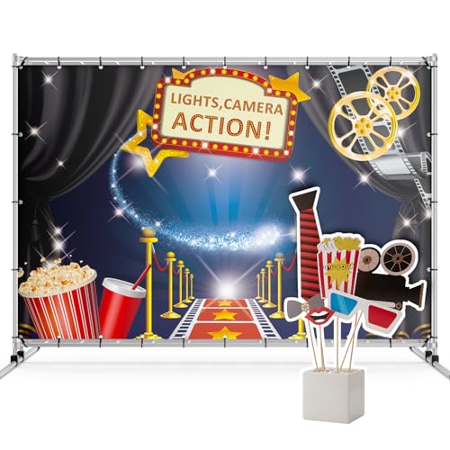 Zink Hollywood Photo Booth Bundle - 15PC Hollywood-tema Photo Booth Kit med 4,5 x 6 ft bakgrund, färdigskurna rekvisita, pinnar och självhäftande kuddar