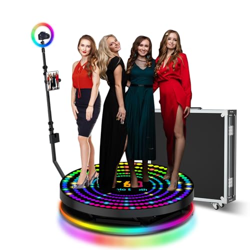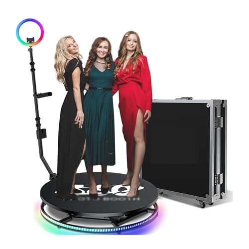 Bärbar 360 Selfie Photobooth, App Control (ljusremsa), med Flight Case, Automatic Slow Motion 360 Spin Photo Camera Booth, för 1 till 5 personer att stå
