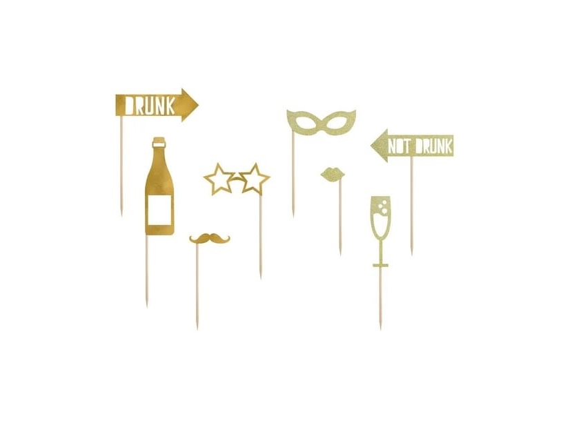 Partydeco Knp24-019-Karton, Photo Booth Prop, Papper, Guld, Vuxen, Alla, Helgdagar