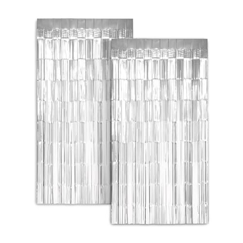 Zink 2-pack 3,28 Ft x 6,56 Ft Silverfoliegardinbakgrund - Tinsel Streamers för Photo Booth, födelsedagsfest, bröllop, examen, semesterdekorationer