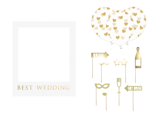 Partydeco Pbf2-Karton, Photo Booth Prop, Papper, Guld, Vit, Vuxen Och Barn, Alla, Bröllop