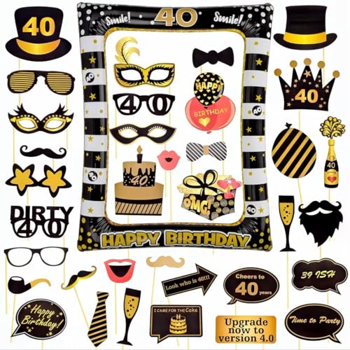 AIBAOBAO 40-års fotobås rekvisita, 35 delar Photobooth Födelsedag Photocall tillbehör för Photo Booth rekvisita Party Kit+ 1 stycken ram Photocall rekvisita för födelsedag DIY dekoration