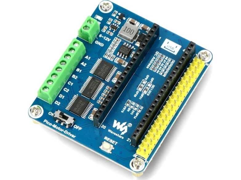 Waveshare Dc-Motorstyrmodul - Motorstyrenhet Med Fyra Kanaler - Overlay För Raspberry Pi Pico - Waveshare 19764}
