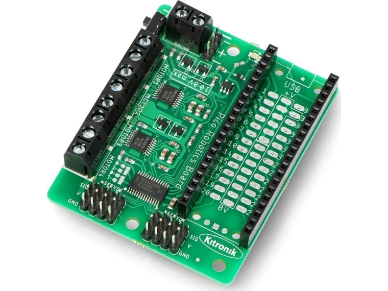 Raspberry Pi Kitronik Robotics Board - Styrenhet För 4 Motorer Och 8 Servon - 3-10,8V - För Raspberry Pi Pico - Kitronik 5329}