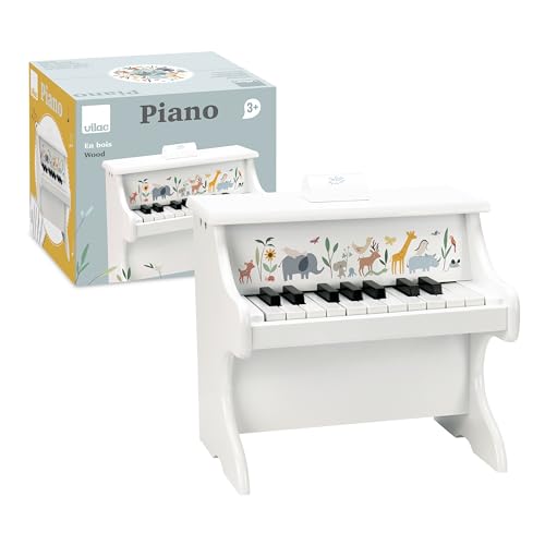 VILAC - Piano The Animals of the World med noter - Sarah Betz - Musikalisk leksak - lackerat och illustrerat trä med 18 tangenter + 10 noter - uppvaknande spel för barn - från 3 år - 7115
