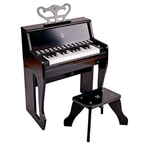 Hape Svart elektroniskt piano med interaktivt lärande - 25 tangenter träpiano, skrivbord och pall i trä, leksak för barn 3 år - musikinstrument, flicka och pojke pedagogisk leksak