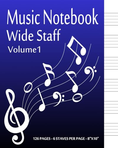 Music Notebook - Wide Staff Volume1: blank sheet piano music notebook kids wide grand staff paper | 6 Staves Per Page | ... | Staff Paper Notebook | 8"x10" | 125 Pages
