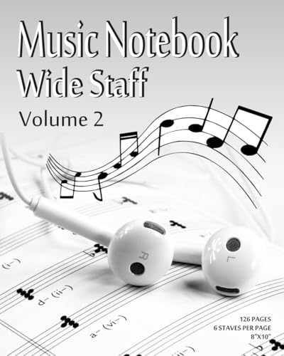 Music Notebook - Wide Staff Volume2: blank sheet piano music notebook kids wide grand staff paper | 6 Staves Per Page | Staff Paper Notebook | 8"x10" | 125 Pages