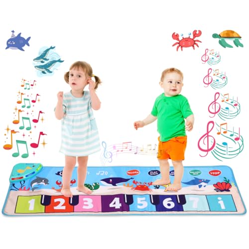 NK Musikmatta för bebis med 8 havsljud LED - Piano barnleksak för barn 3 4 5 år, original Montessori födelsedag jul present, hopfällbar, rekord/uppspelningsfunktion (110 x 36 cm)