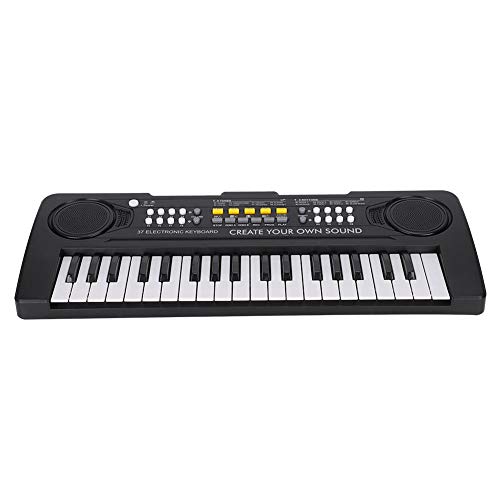 Elektroniskt tangentbord med 37 tangenter, multifunktionellt elektroniskt piano med mikrofon, piano för barn, pianotangentbord för nybörjare, pojkar, flickor, svart