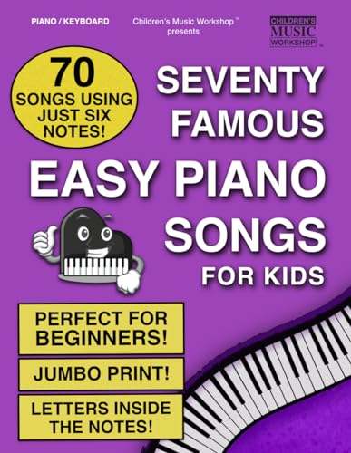 Seventy Famous Easy Piano Songs for Kids: 70 Songs Using Just Six Different Notes / Perfect for Beginners / Jumbo Print / Letters Inside the Notes