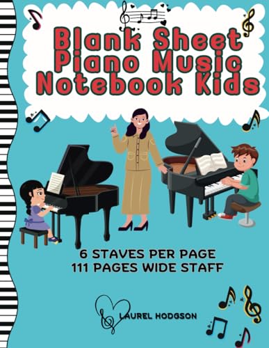 Blank Sheet Piano Music Notebook kids: Large stave manuscript paper, 6 staves per page, A fun and Easy to use Manuscript Book for Young Musicians
