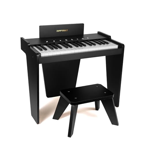 ZIPPY MAT Barnpianotangentbord, 37 tangenter digitalt piano för barn, musiklärande instrumentleksak, träpiano för småbarn, flickor och pojkar (Svart Basic)
