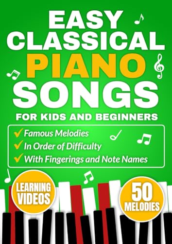 EASY CLASSICAL PIANO SONGS FOR KIDS AND BEGINNERS: Famous melodies in order of difficulty with fingerings and note names