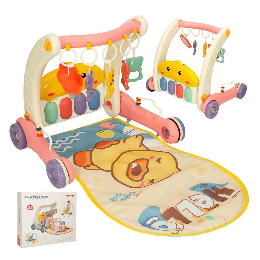 Pedagogisk matta för bebisar 2-i-1 anka med piano + pusher