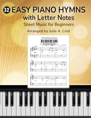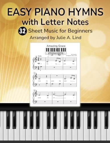 EASY PIANO HYMNS with Letter Notes: Sheet Music for Beginners