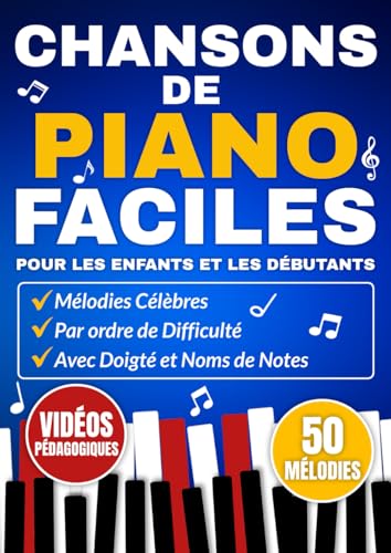 Chansons de Piano Faciles pour les Enfants et les Débutants: Mélodies Célèbres par ordre de Difficulté avec Doigté et Noms de Notes