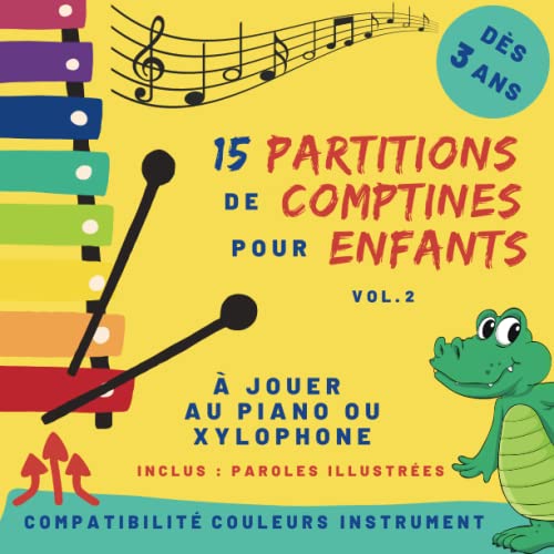 Pour 15 partitions de comptines enfants Volume 1: piano ou xylophone dès 3 ans partitions avec code couleur et nom des notes