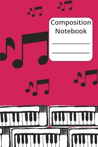 Composition Notebook: Wide Ruled | 6 x 9 inches | 100 pages | Piano and Music notes | Dark Pink