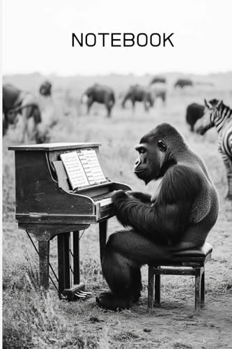 Notebook: Carnet de notes, format de poche, 80 pages lignées sur papier crème 90gr/m², couverture souple, gorille au piano
