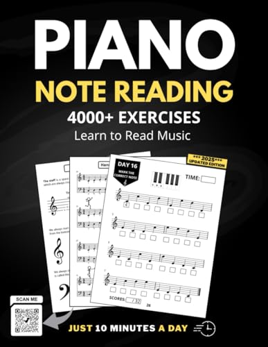 Piano Note Reading Exercises: Music Skills in 10 Minutes a Day, Student Workbook, How To Read Music, Sign 4,000 Notes