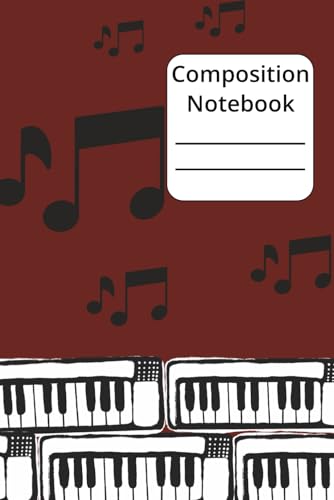 Composition Notebook: Wide Ruled | 6 x 9 inches | 100 pages | Piano and Music notes | Burgundy