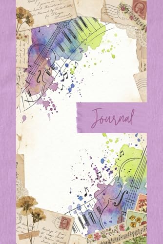 Watercolor Symphony Junk Journal Pages - 6x9 Artistic Musical Scrapbooking Paper - 100 Decorative Writing Sheets with Violin, Piano Keys, Music Notes and Floral Ephemera
