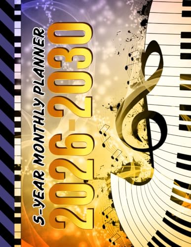 5-Year Monthly Planner 2026-2030: Hardcover / Dated Large / 60 Month Agenda / With Notes Pages - To Do List / Music Note Keyboard Piano - Musician Art Cover Design