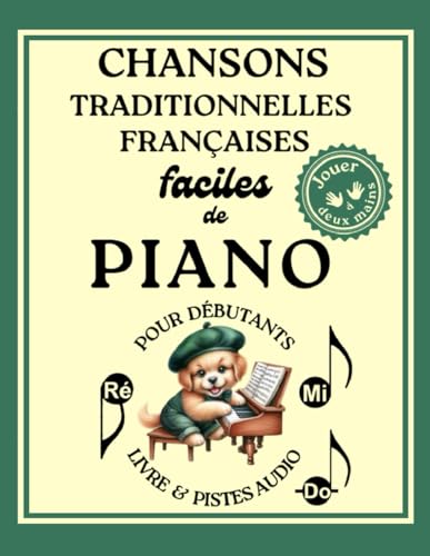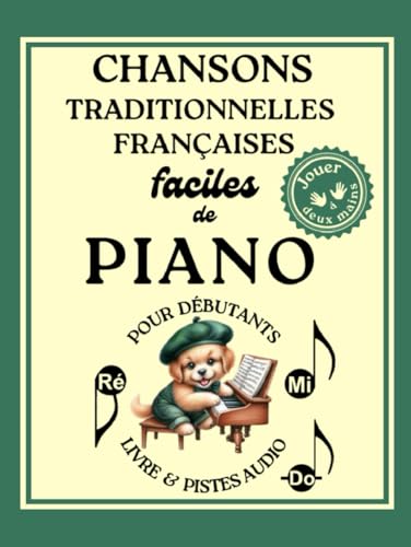 Chansons Traditionnelles Françaises Faciles de Piano pour Débutants (Jouer à Deux Mains, Livre & Pistes Audio): Format grandes notes avec doigtés