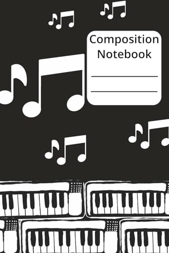Composition Notebook: Wide Ruled | 6 x 9 inches | 100 pages | Piano and Music notes | Black
