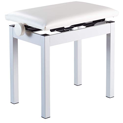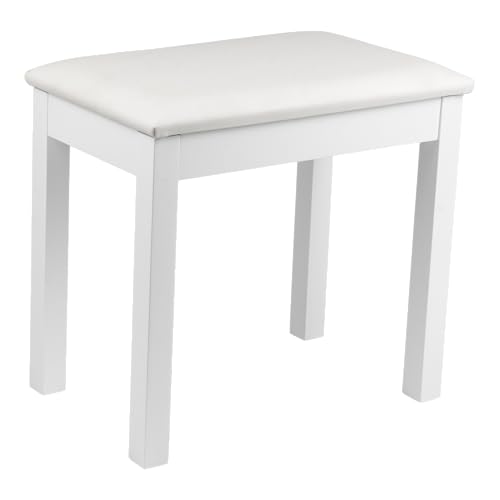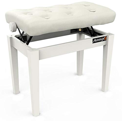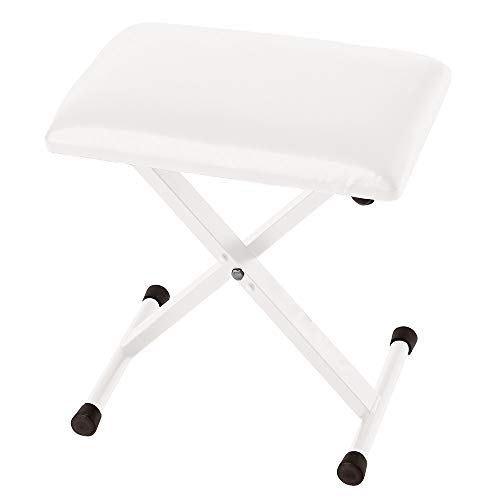 Audibax KB600 vit piano- och tangentbordsbänk, kraftig hopfällbar pianobänk, justerbar i höjd från 47,5 till 56,5 cm - vadderad tangentbordspall - tillverkad av trä