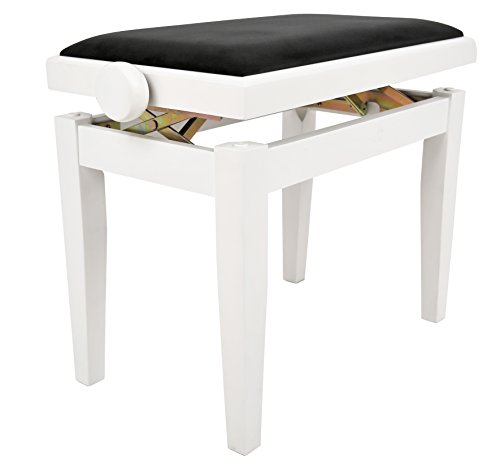 Juan Miguel Navarrez Pianobänk Elegance vit högblank - Massivt trä - Höjdjusterbar genom saxmekanik - Velour klädsel svart