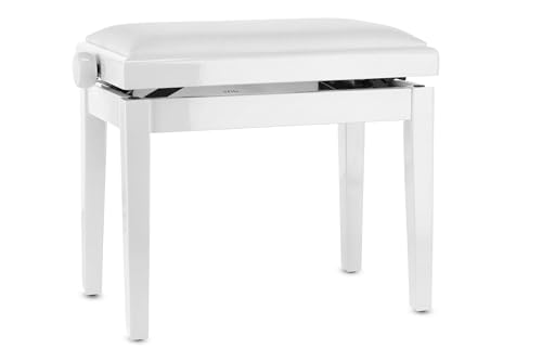 GEWA Pianobänk Deluxe Vinyl - Vit högglans - Massivt trä - Sitsöverdrag i vinyl - Sits 52x30cm - Höjdjusterbar - Höghållfast infästning - 2t brottlast