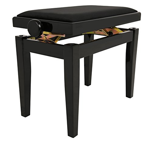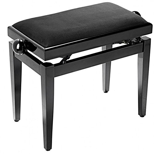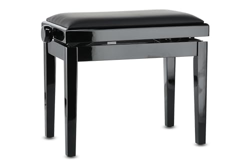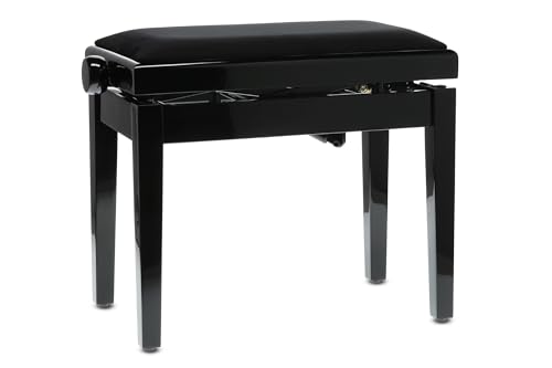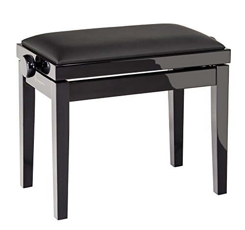 GEWA pianobänk deluxe svart högglans (steglös höjdjustering från 48-57 cm, högkvalitativt massivt trä, hållbart och robust, hög brottbelastning, sittyta 52 x 30 cm, sitsöverdrag i läderimitation)