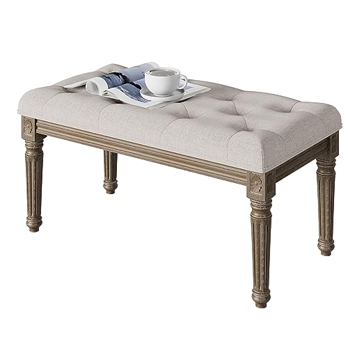 LUNSY Bänk tuftad, klädselbänk i vintage stil vadderad skobänk pianobänk för vardagsrum, foajé, hall, matsal och sovrum, beige 80 x 43 x 47